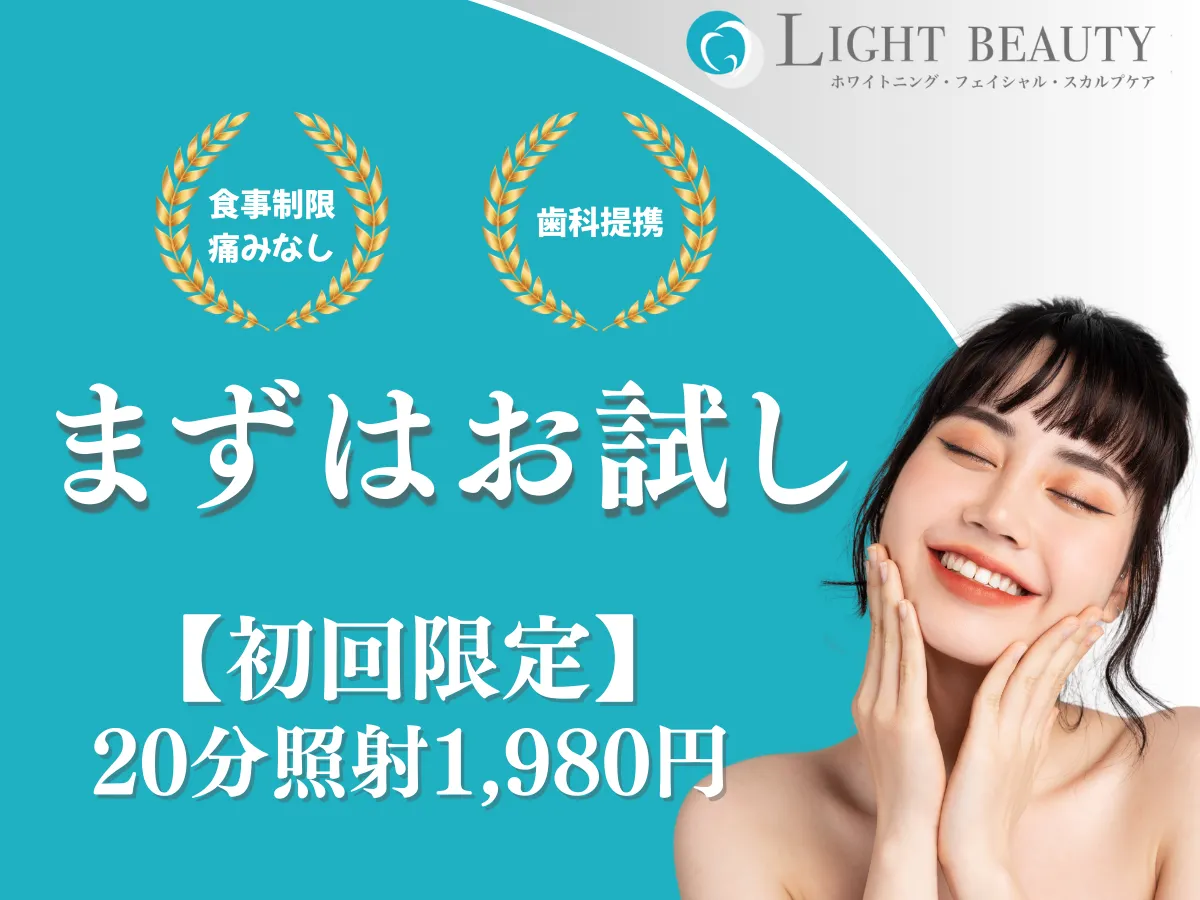 ※金額は全て税込み価格です。当店では、同意書にサインをいただいてからの施術となります。下記の方はサービスをお断りさせて頂く場合がございます。妊娠中、過度な虫歯、知覚過敏、無カタラーゼ、歯列矯正中、体調不良、アルコールを摂取されているなど。ご不安な方は、事前に、お気軽に店舗までお問い合わせください。
